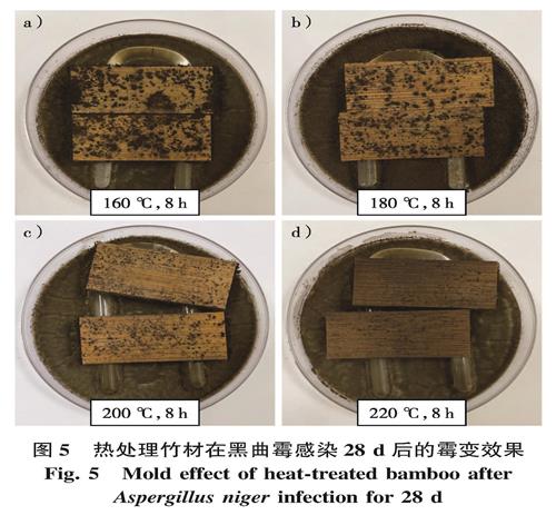 Fig.5 Mold effect of heat-treated bamboo after Aspergillus niger infection for 28 d